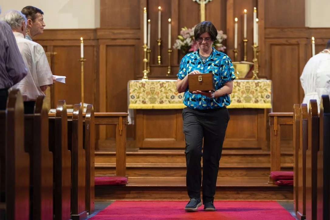 Eucharistic Ministers (EMs) assist prayerfully at the altar, supporting the clergy and offering the common cup to the congregation. They may also lead the Prayers of the People. EMs typically serve once a month and must be licensed, confirmed members, age 16 or older. This role is a sacred opportunity to participate in worship and support the church’s sacramental life. Those feeling called are encouraged to explore this ministry.